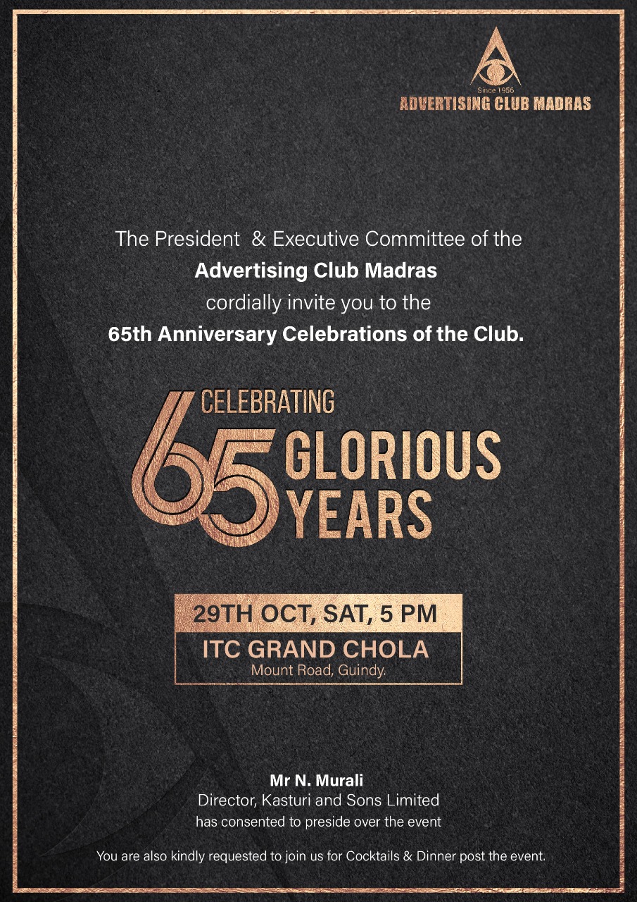- Advertising Club Madras celebrated its successful completion of 65 years of active functioning.